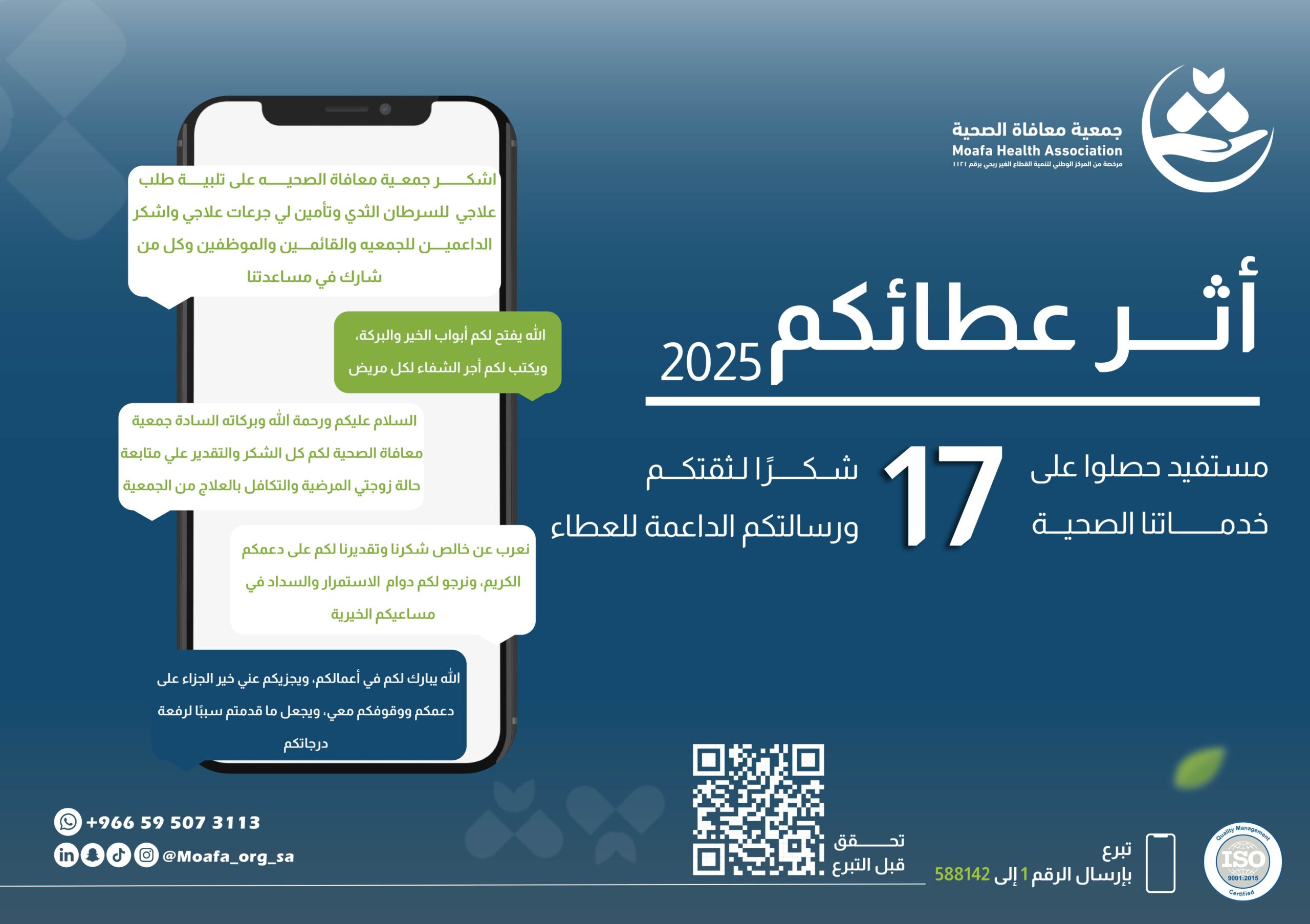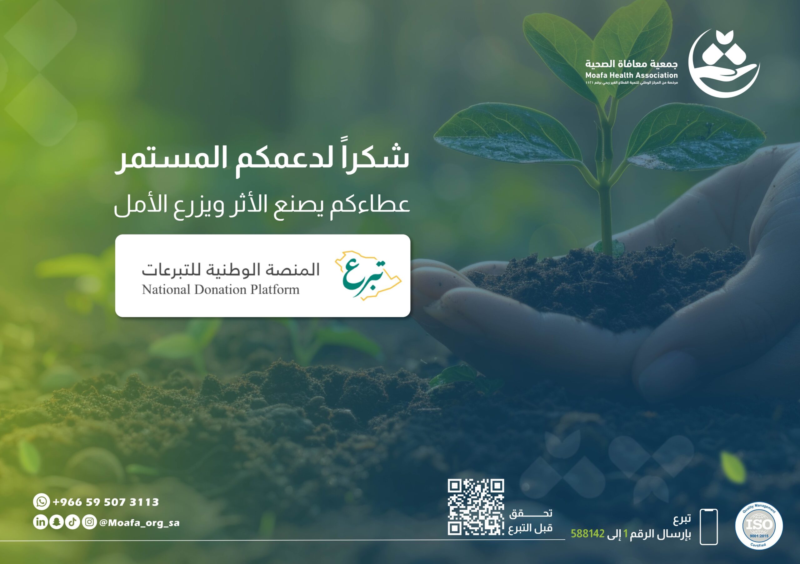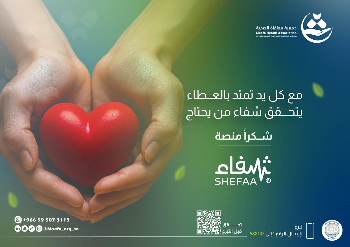 شكراً منصة شفاء لمساهمتكم بتوفير الدواء لـ مستفيدي جمعية معافاة الصحية بأكثر من نصف مليون خلال عام 2023م